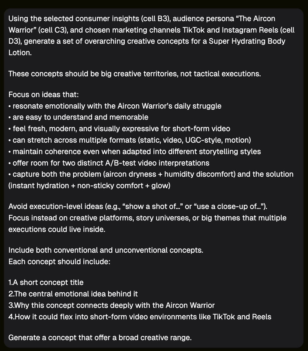 Using a Campaign Idea Agent, we developed overarching concepts, not executions.