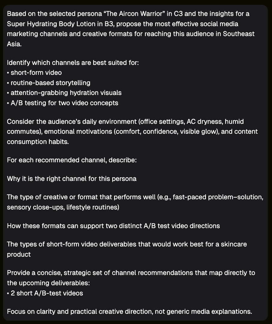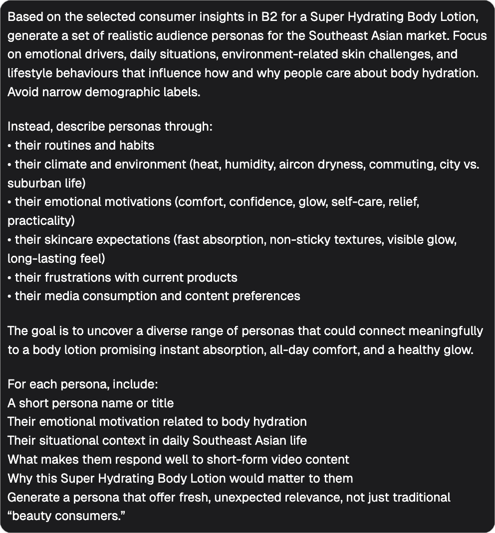 | Insights without people are just bullet points. So we passed the insights into an Audience Persona Agent.