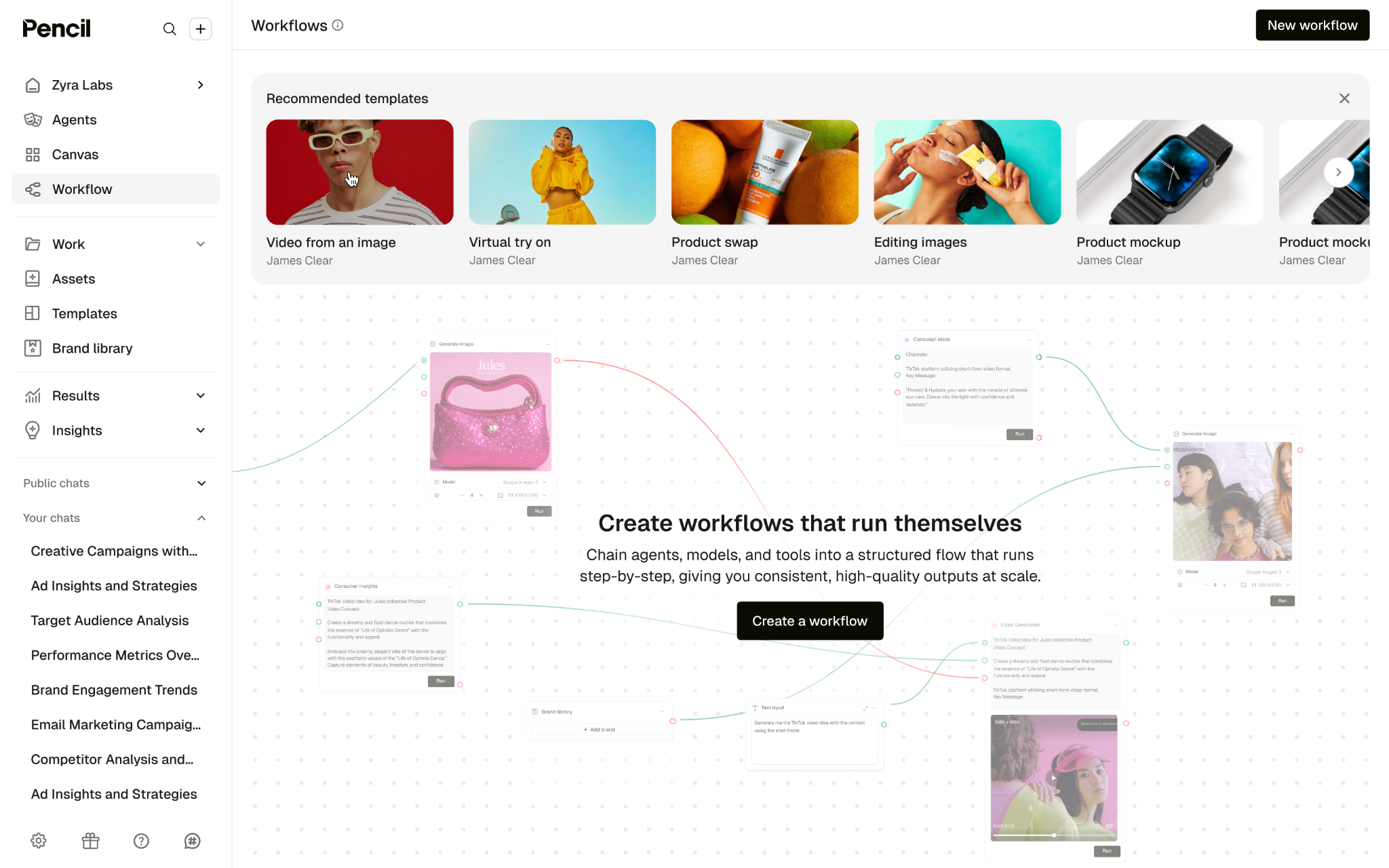 With Workflows, you can design that chain once using a visual builder, then let Pencil handle the execution.