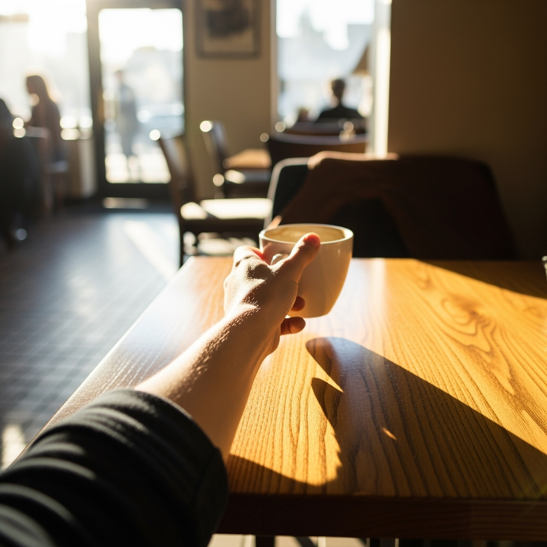 Instead of people, you start noticing traces, a shadow crossing a wall, a reflection in a window, a chair left slightly turned. Little signs that someone has just been here.