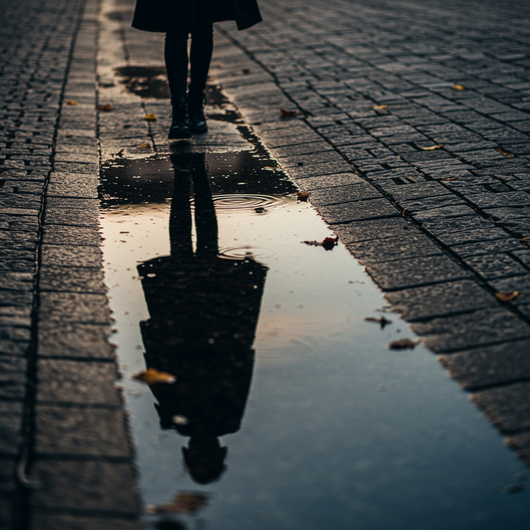 4. Reflections Puddles, glass, mirrors. Reflections create presence without visibility. Keep them subtle, like catching someone’s reflection just before they walk away. | |
